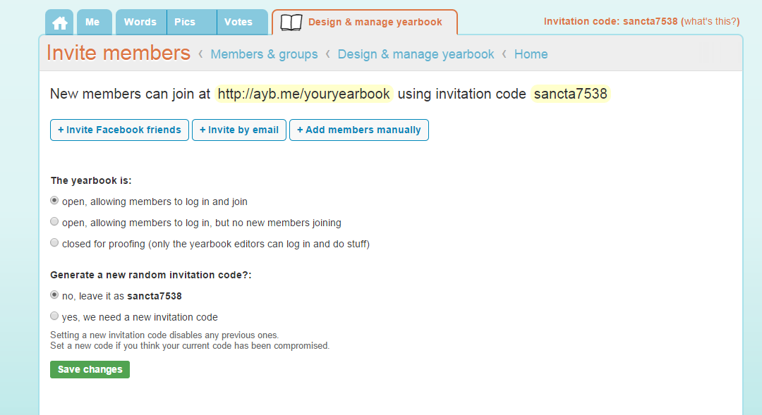 Invite members: If you want the yeargroup to log in and add their own content. We recommend this option, as it’s a really quick and easy way to collect photos and text.