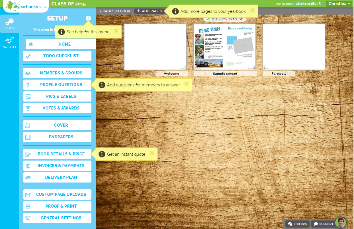 - Adding profile questions: Think about how to best represent the fun your yeargroup has had. Ask many individual individual questions (e.g. In Year 7 I was…) or a general question (About me, or Message to the year).